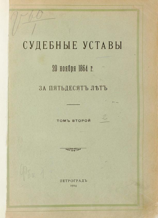 Cудебные уставы 20 ноября 1864 года за 50 лет. Том 2