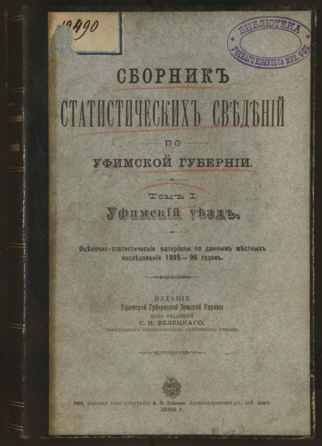 Сборник статистических сведений по Уфимской губернии. Т. 1