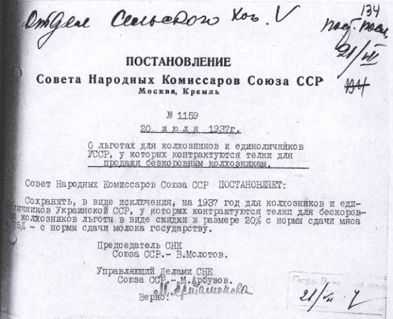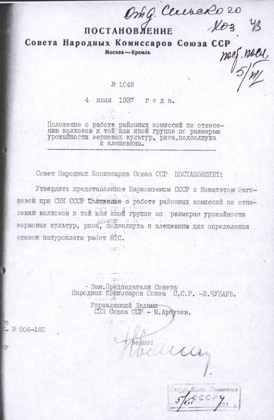 Постановление № 1135 СНК СССР и ЦК ВКП(б). Вопросы Азово-Черноморского края. 17 июля 1937 г.
