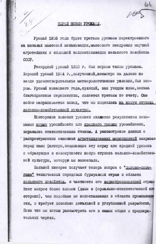 Проект постановления СНК СССР об учете посевных площадей и урожая. 21 апреля 1932 г.