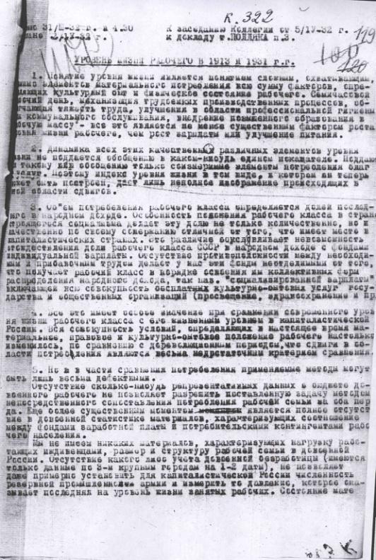 Уровень жизни рабочего в 1913 и 1931 гг. Материал к заседанию коллегии ЦУНХУ от 5 апреля 1932 г.