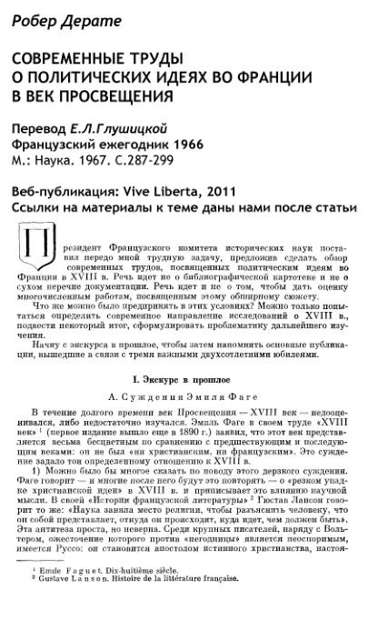 Современные труды о политических идеях во Франции в век Просвещения