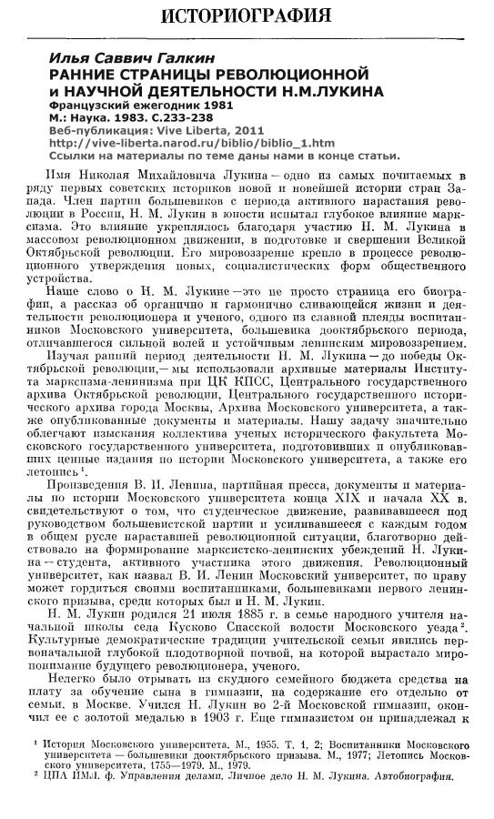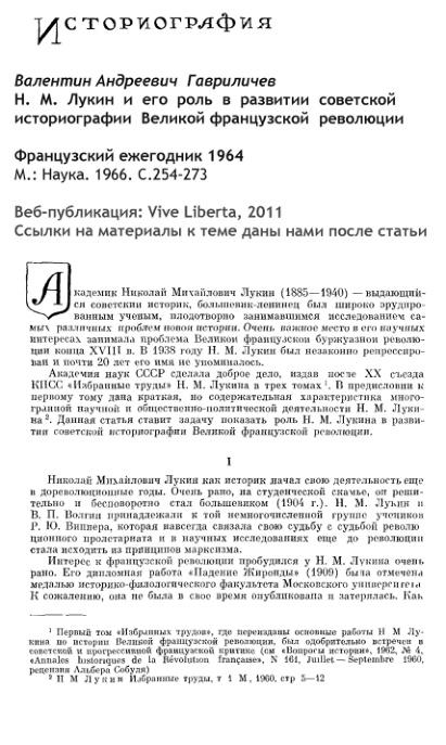 Н.М.Лукин и его роль в развитии советской историографии Великой французской революции