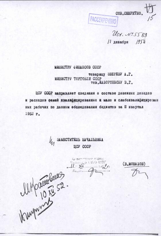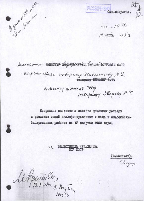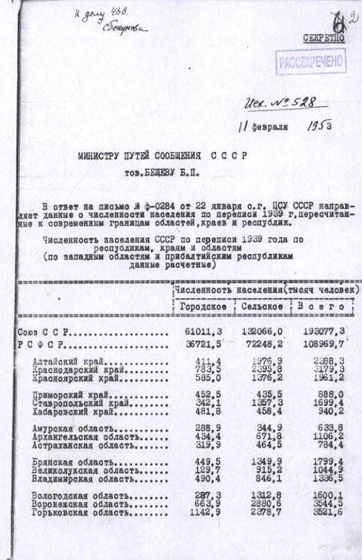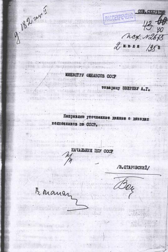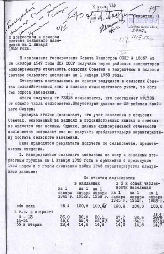 Возрастной и половой состав сельского населения СССР на 1 января 1953 года. 1 апреля 1953 г.