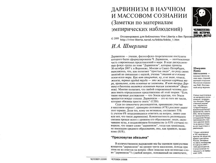 Дарвинизм в научном и массовом сознании: заметки по материалам эмпирических наблюдений