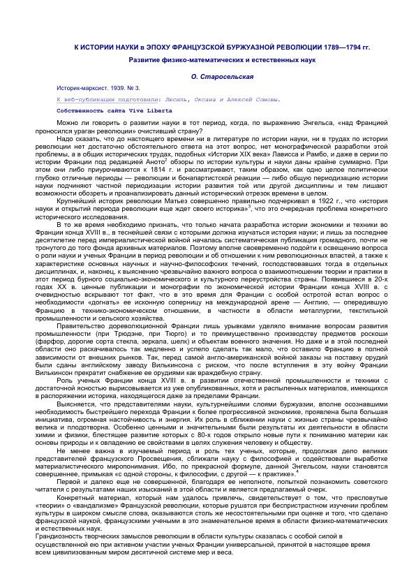 К истории науки в эпоху Французской революции: развитие физико-математических и естественных наук