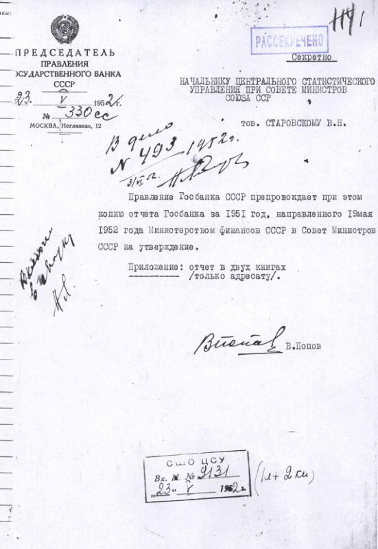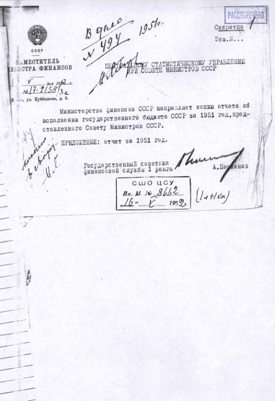 Отчет Министерства Финансов об исполнении государственного бюджета СССР за 1951 год. 16 мая 1952 г.