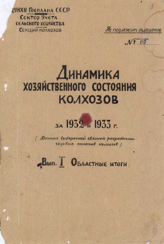 Динамика хозяйственного состояния колхозов за 1932 и 1933 гг. Выпуск I