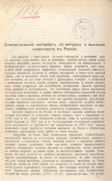 Статистический материал по вопросу о высокой смертности в России