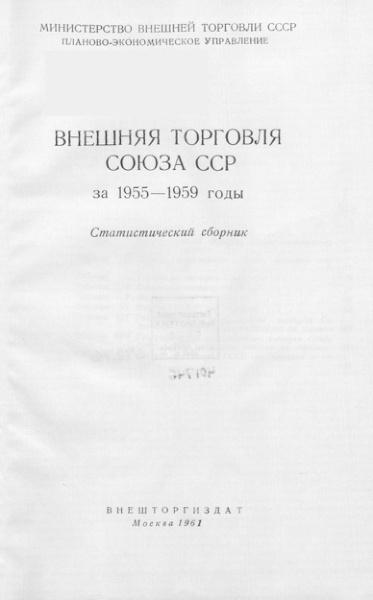Внешняя торговля Союза ССР за 1955-1959 годы (Статистический сборник)