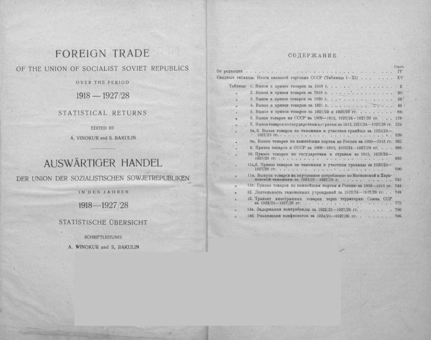 Внешняя торговля Союза ССР за 1918-1927/28 годы (Статистический сборник)