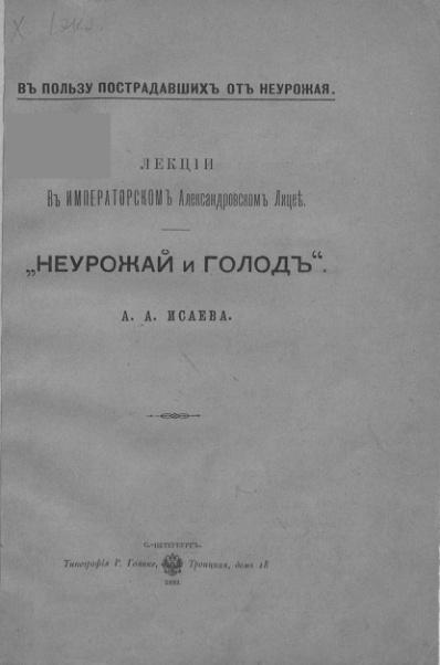 Лекции в Императорском Александровском Лицее "Неурожай и голод" А.А. Исаева