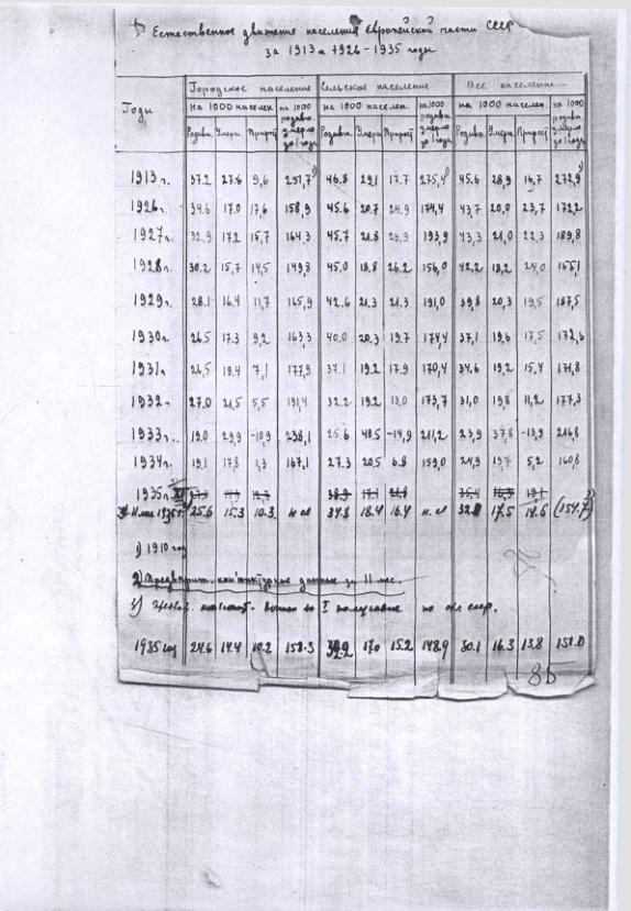 Естественное движение населения Европейской части СССР за 1913 и 1926-1935 гг.