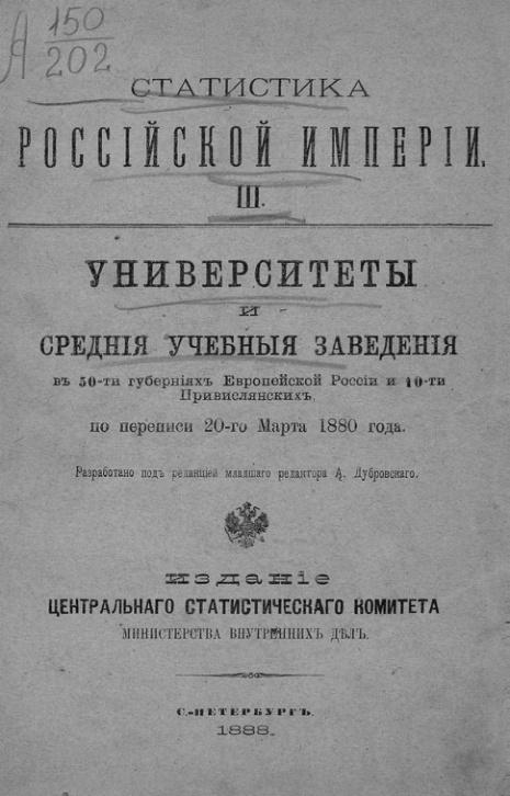 Университеты и средние учебные заведения в 50-ти губерниях Европейской России и 10-ти Привислянских