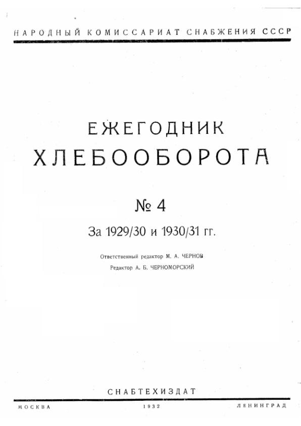Ежегодник хлебооборота за 1931-32, 1932-33 и предварительные итоги заготовок 1933 г.