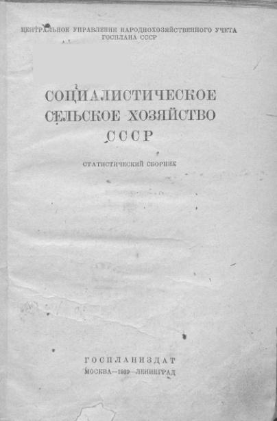 Социалистическое сельское хозяйство СССР 1939 (Статистический сборник)