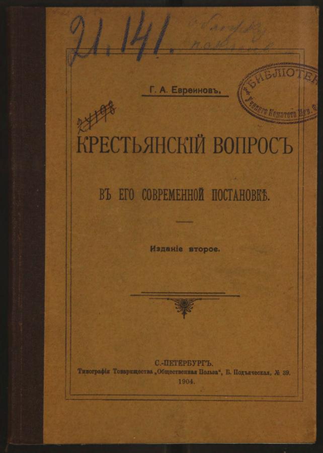 Всесословная волость по проектам Рязанского и Петербургского земств. Вырезка из журнала "Вестник Европы", 1900, X.