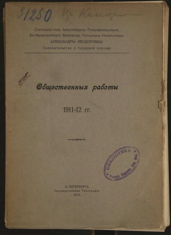 Попечительство о трудовой помощи. Общественные работы 1911-12 гг.