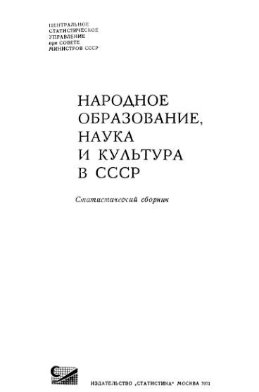 Народное образование, наука и культура в СССР. Статистический сборник (1971)