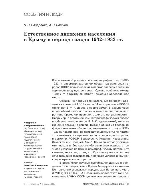Естественное движение населения в Крыму в период голода 1932–1933 гг.