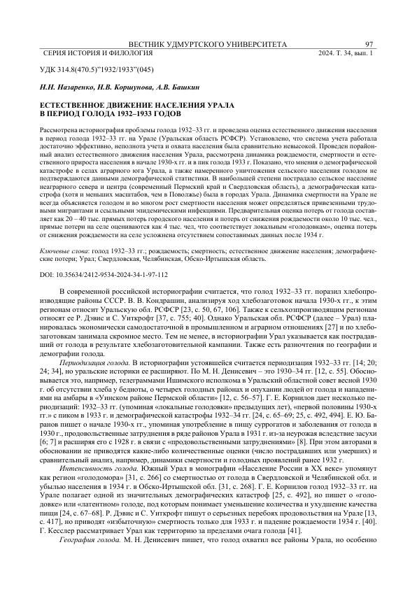 Естественное движение населения Урала в период голода 1932-1933 годов