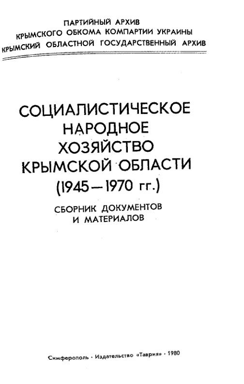 Социалистическое народное хозяйство Крымской области 1945-1970 гг. (сборник документов и материалов)