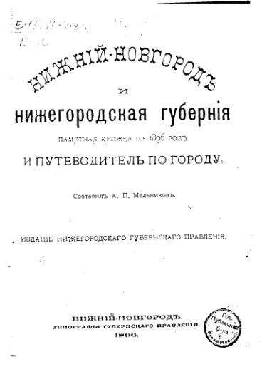 1896 Памятная книжка Нижегородской губернии и путеводитель по городу
