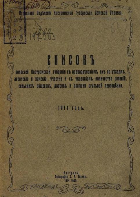 1908 Сборник статистических сведений по Костромской губернии - выпуск 1