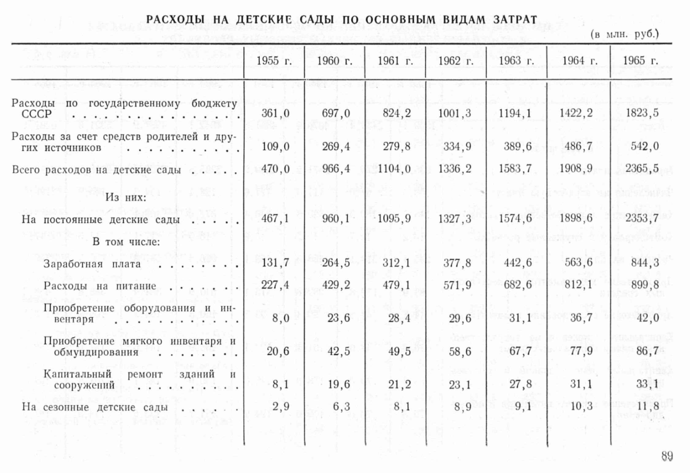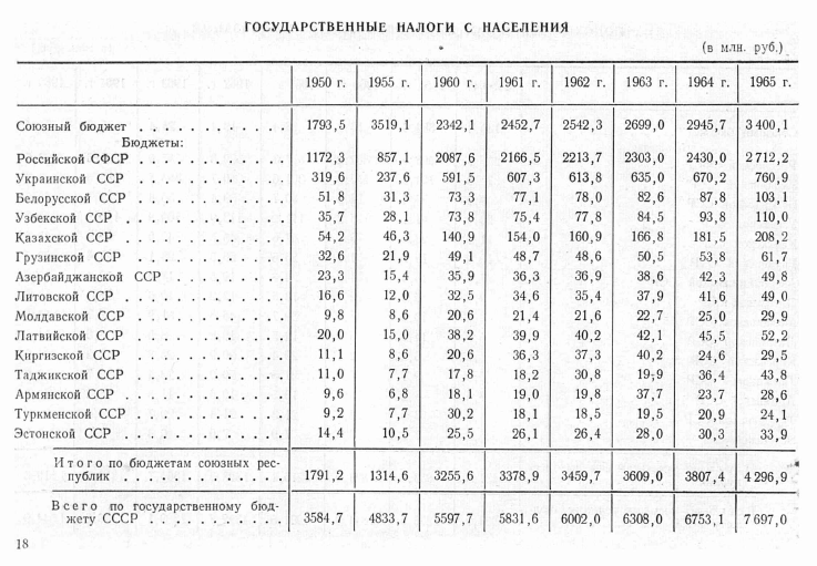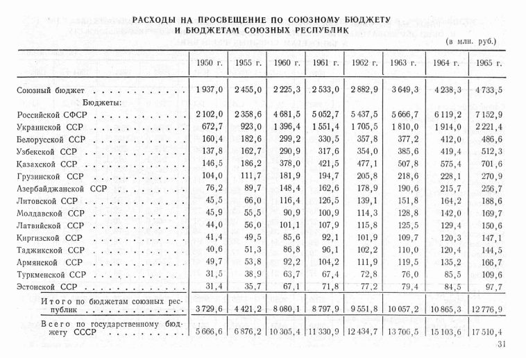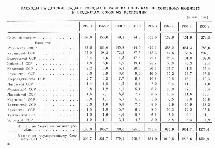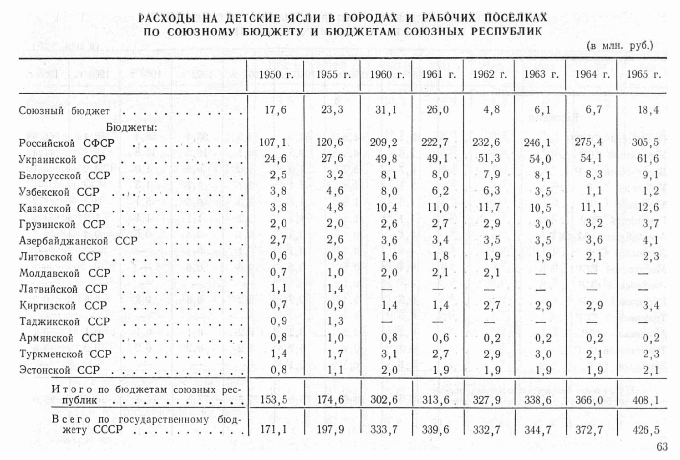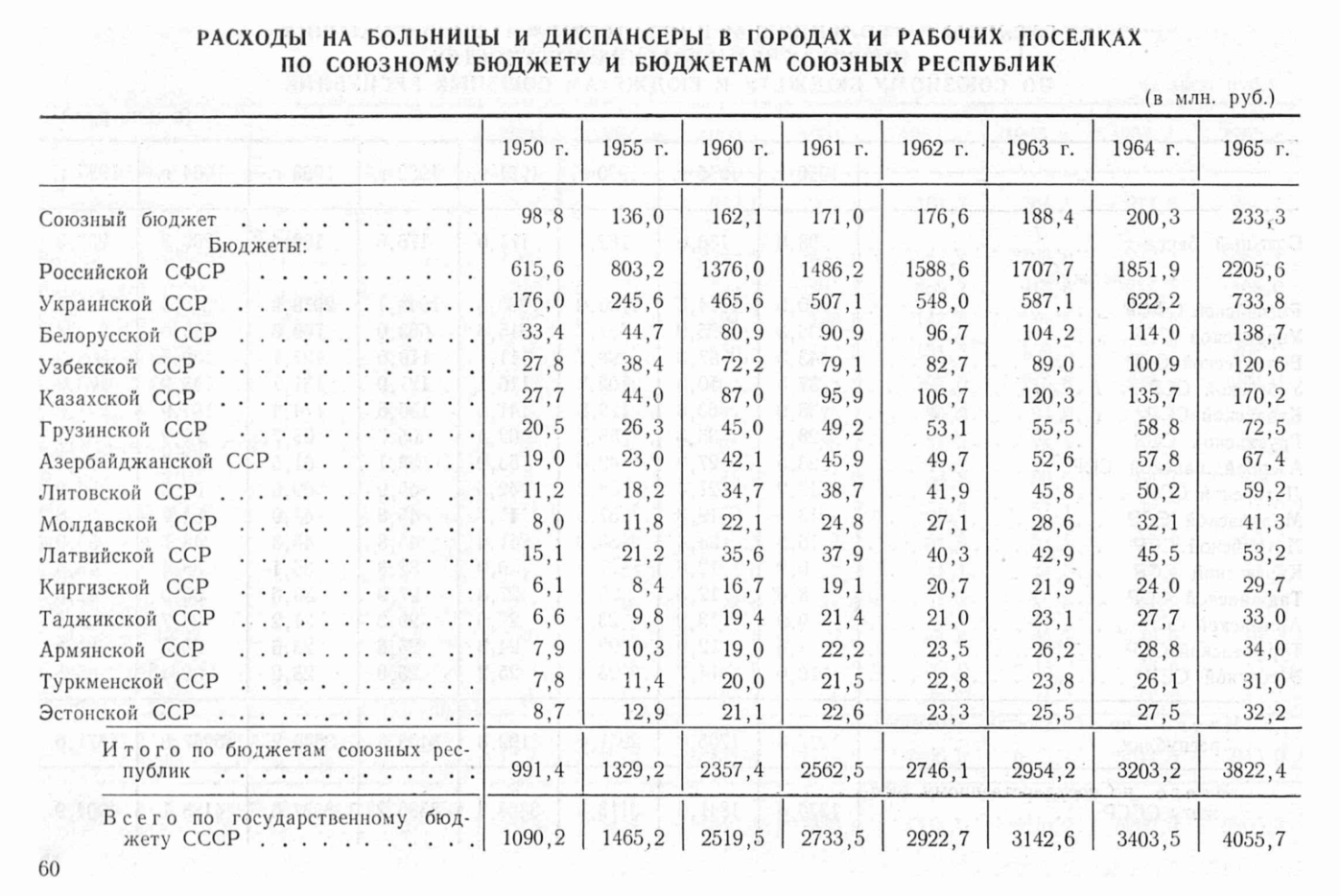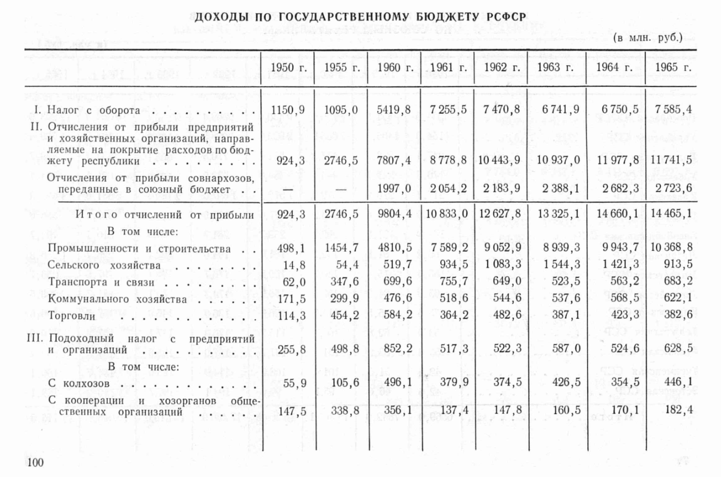 Распределение расходов по видам местных бюджетов РСФСР в периоды 1950, 1955, 1961-1965 годов