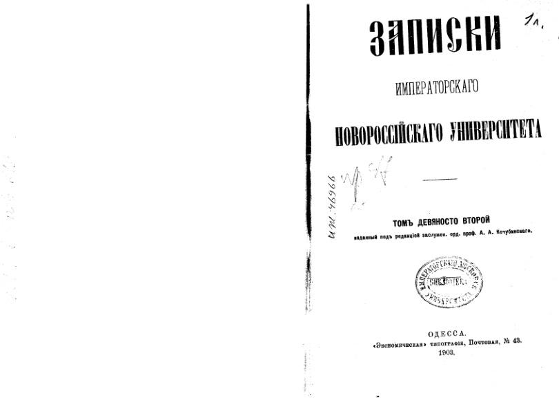 Часть Записки императорского Новороссийского университета. Переход права собственности на движимые имущества посредством передачи и соглашения. 92 том
