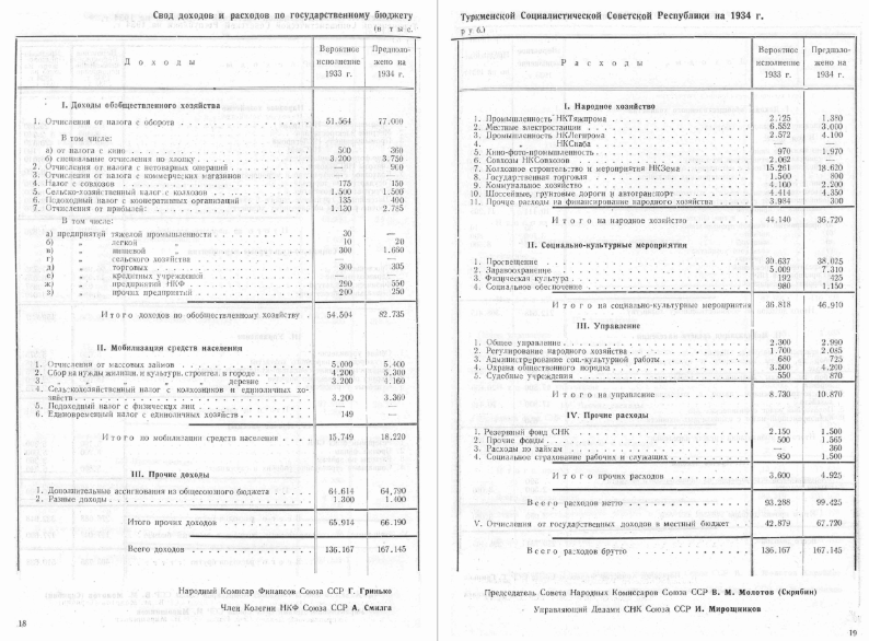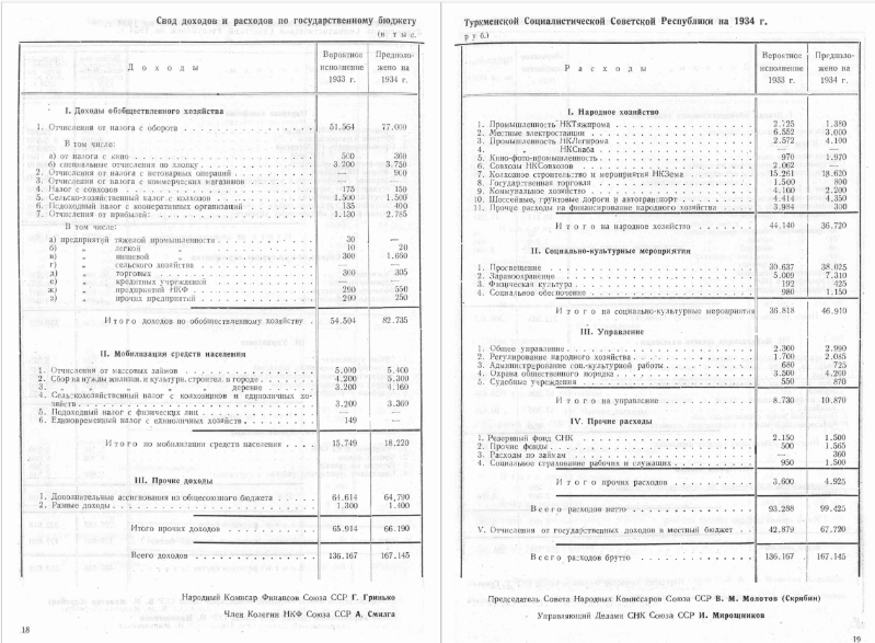 Расходы по государственному бюджету Туркменской Социалистической Советской Республики на 1933 г.