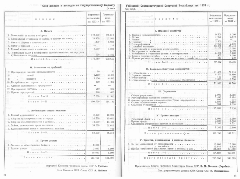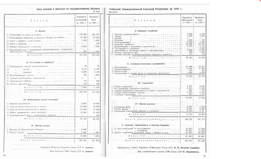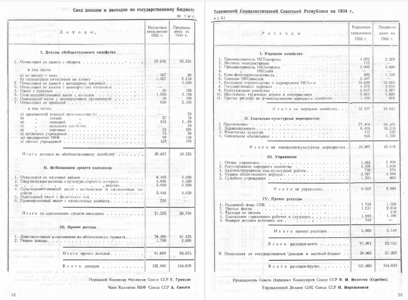 Свод расходов по государственному бюджету Таджикской Социалистической Советской Республики на 1933 г.