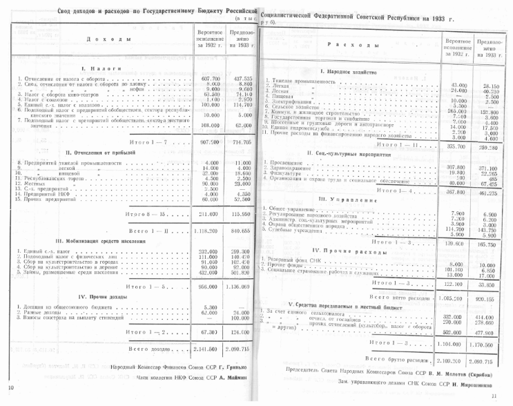 Свод доходов по Государственному Бюджету Российской Социалистической Федеративной Советской Республики на 1933 г. (в тыс. руб.)