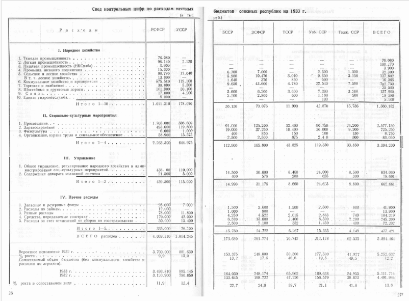 Свод контрольных цифр по расходам местных бюджетов союзных республик на 1933 г. (в тыс. руб.)