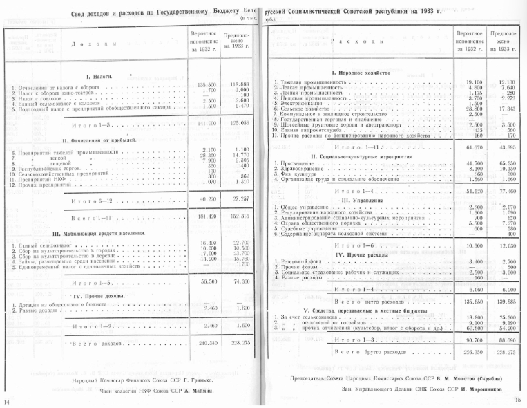 Свод расходов по Государственному Бюджету Белорусской Социалистической Советской Республики на 1933 г.
