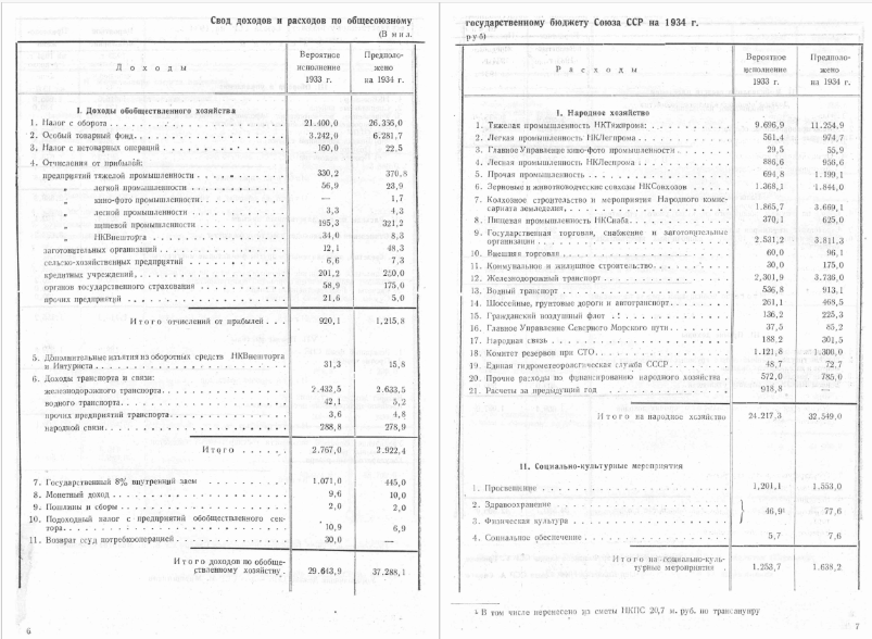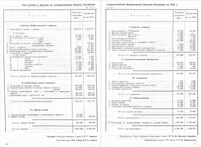 Свод расходов по государственному бюджету Российской Социалистической Федеративной Советской Республики на 1934 г. (в тыс. руб.)
