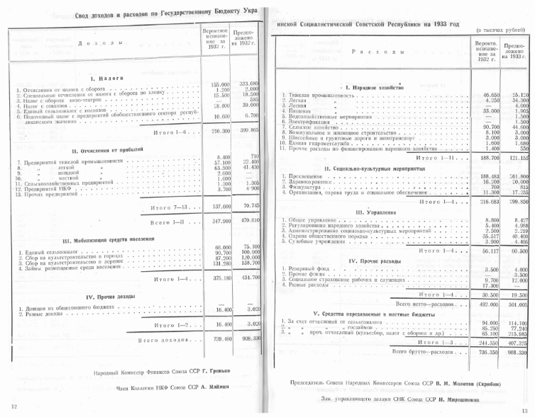 Свод доходов по Государственному Бюджету Украинской Социалистической Советской Республики на 1933 год (в тысячах рублей)