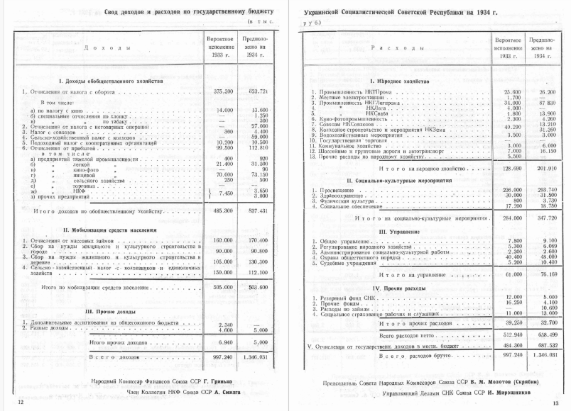 Свод расходов по государственному бюджету Украинской Социалистической Советской Республики на 1934 г. (в тыс. руб.)