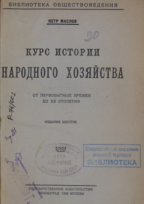 Курс истории народного хозяйства от первобытных времен до ХХ столетия