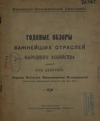 Годовые обзоры важнейших отраслей народного хозяйства (год девятый)