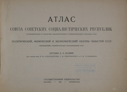 Атлас СССР применительно к областям районирования Госплана СССР. Политический, физический и экономический обзоры областей СССР