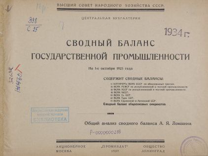 Сводный баланс государственной промышленности на 1 октября 1925 года