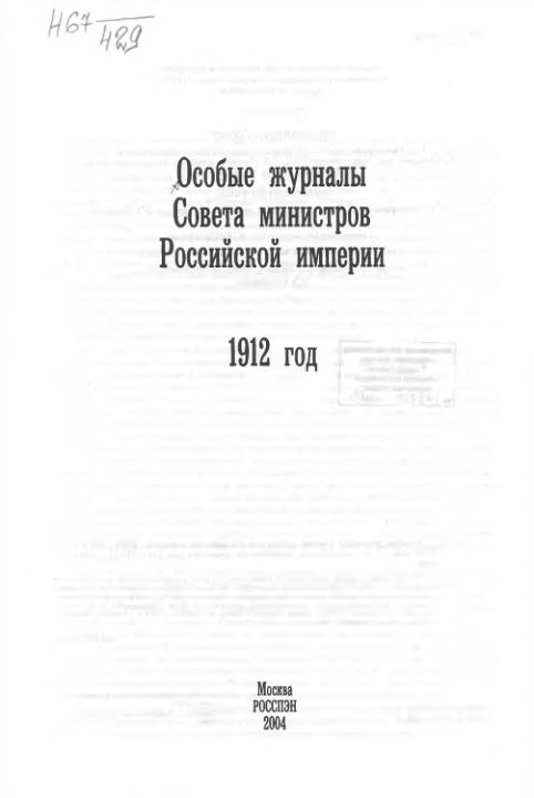 Особые журналы Совета министров Российской империи. 1912