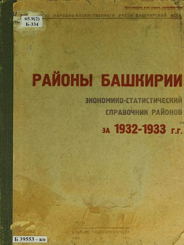 1932-1933 Экономико-статистический справочник районов Башкирии