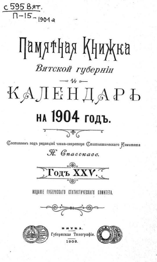 Памятная книжка Вятской губернии и календарь на 1904 год