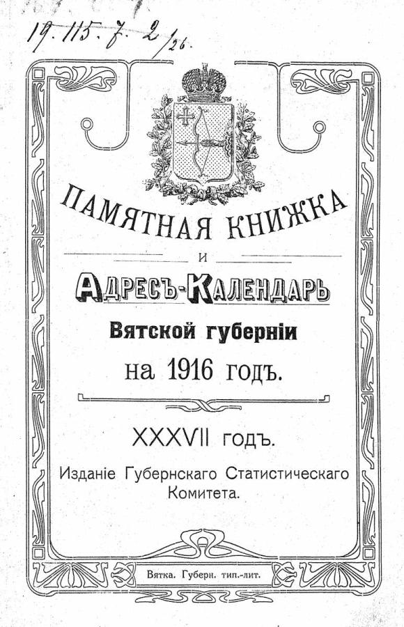 Памятная книжка и Адрес-Календарь Вятской губернии на 1916 год