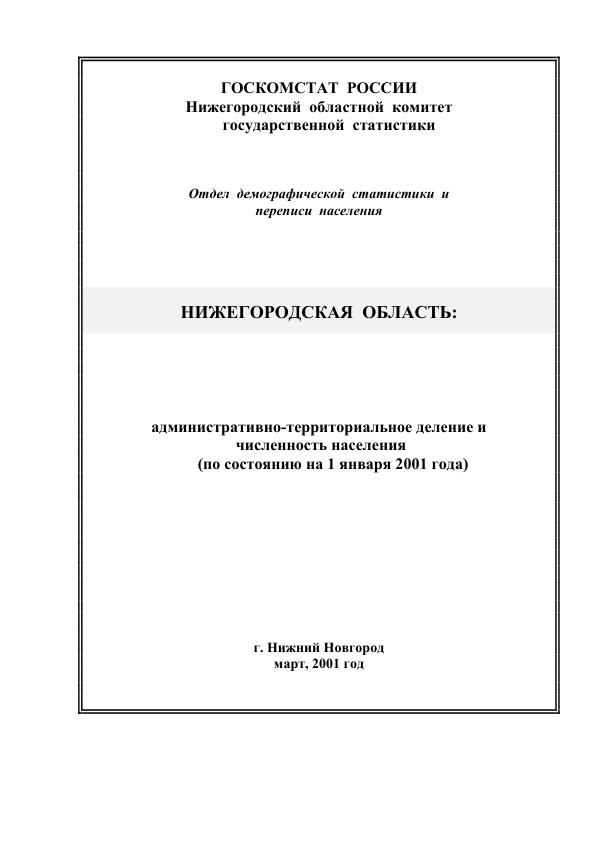 Нижегородская область. Административно-территориальное деление на 1 января 2001 года