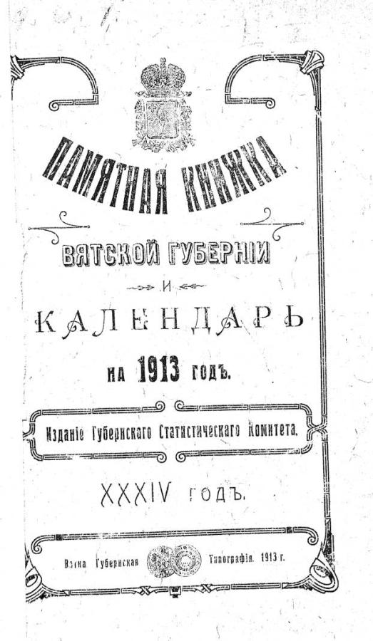 Памятная книжка Вятской губернии и календарь на 1913 год