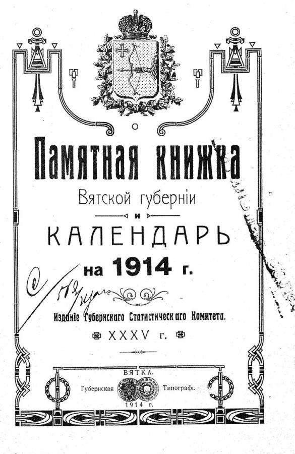 Памятная книжка Вятской губернии и Календарь на 1914 год