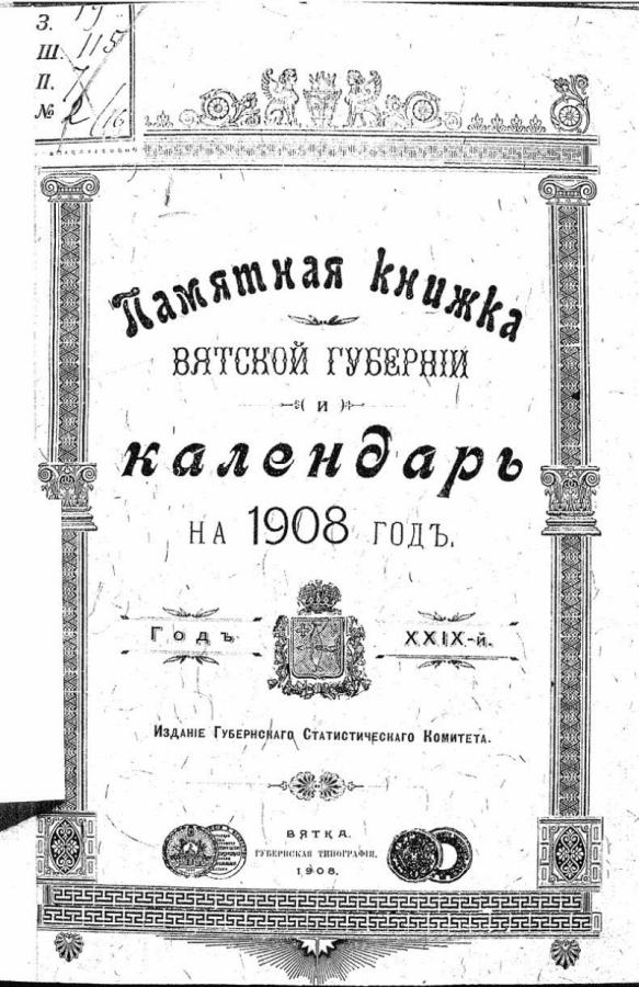 Памятная книжка Вятской губернии и календарь на 1908 год